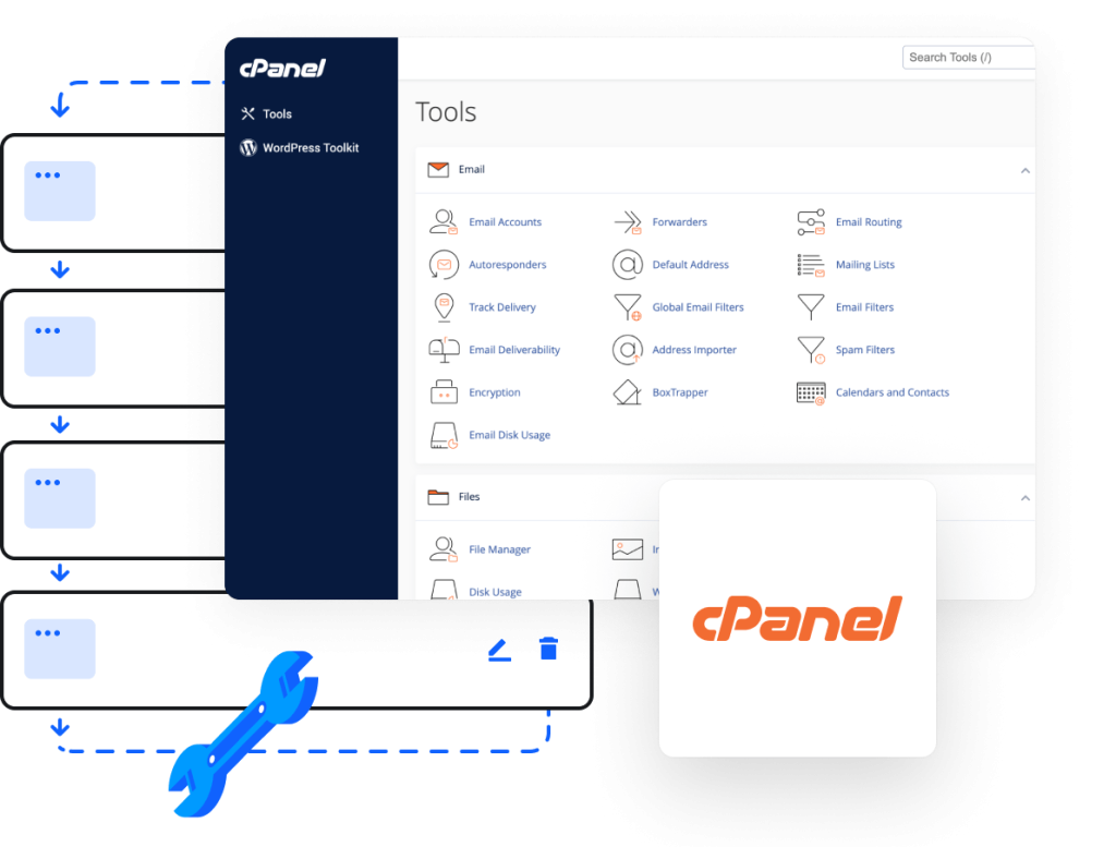 Gestiona archivos, bases de datos, correos y dominios desde una interfaz intuitiva y poderosa. Sin curvas de aprendizaje complicadas.